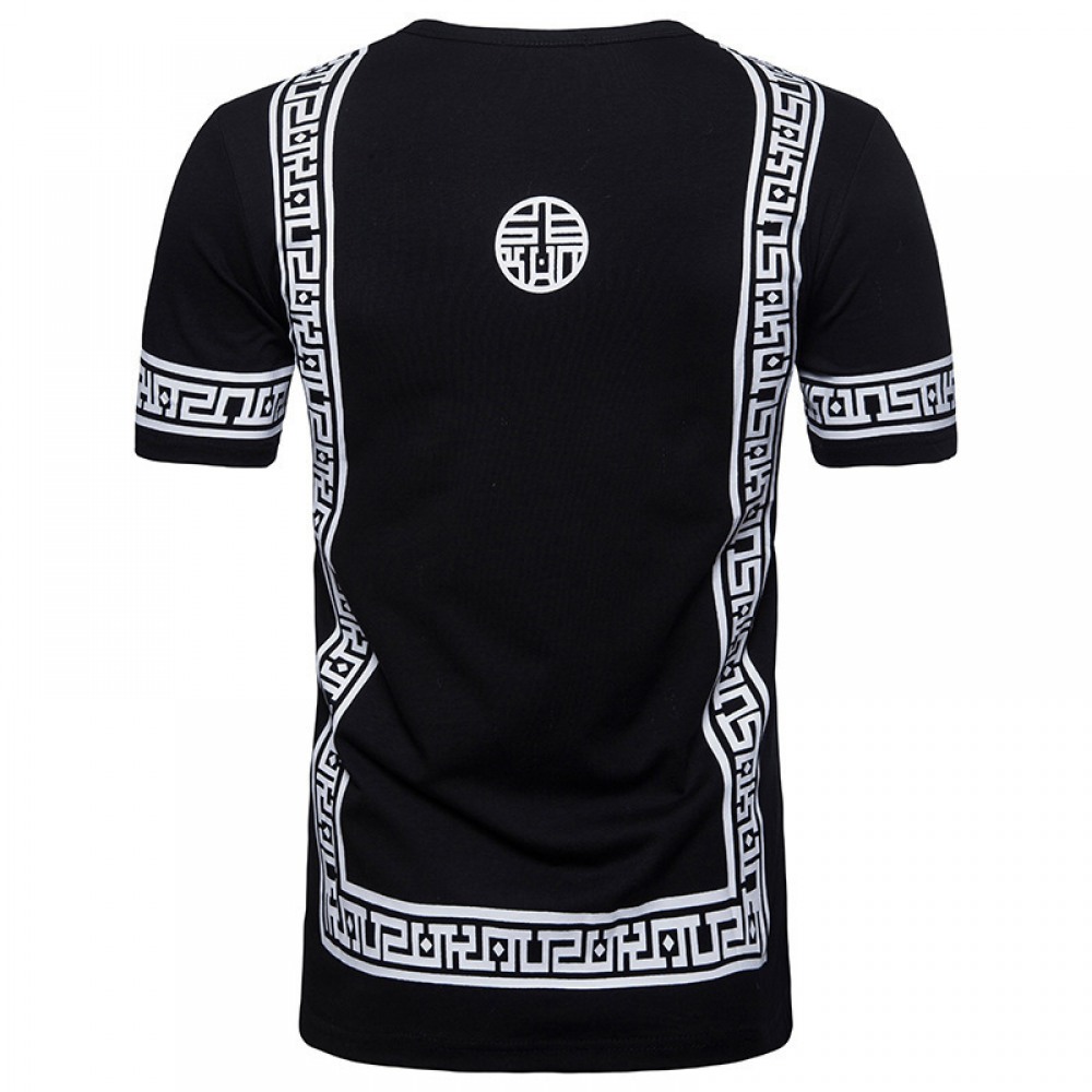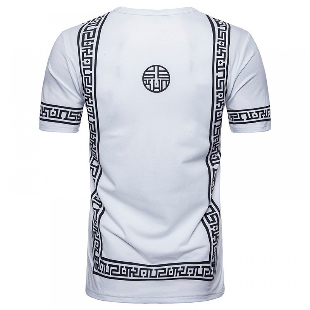 New Summer Men's Casual Street Men's Short-Sleeved T-Shirt Cotton and Linen Lace Casual Fashion
