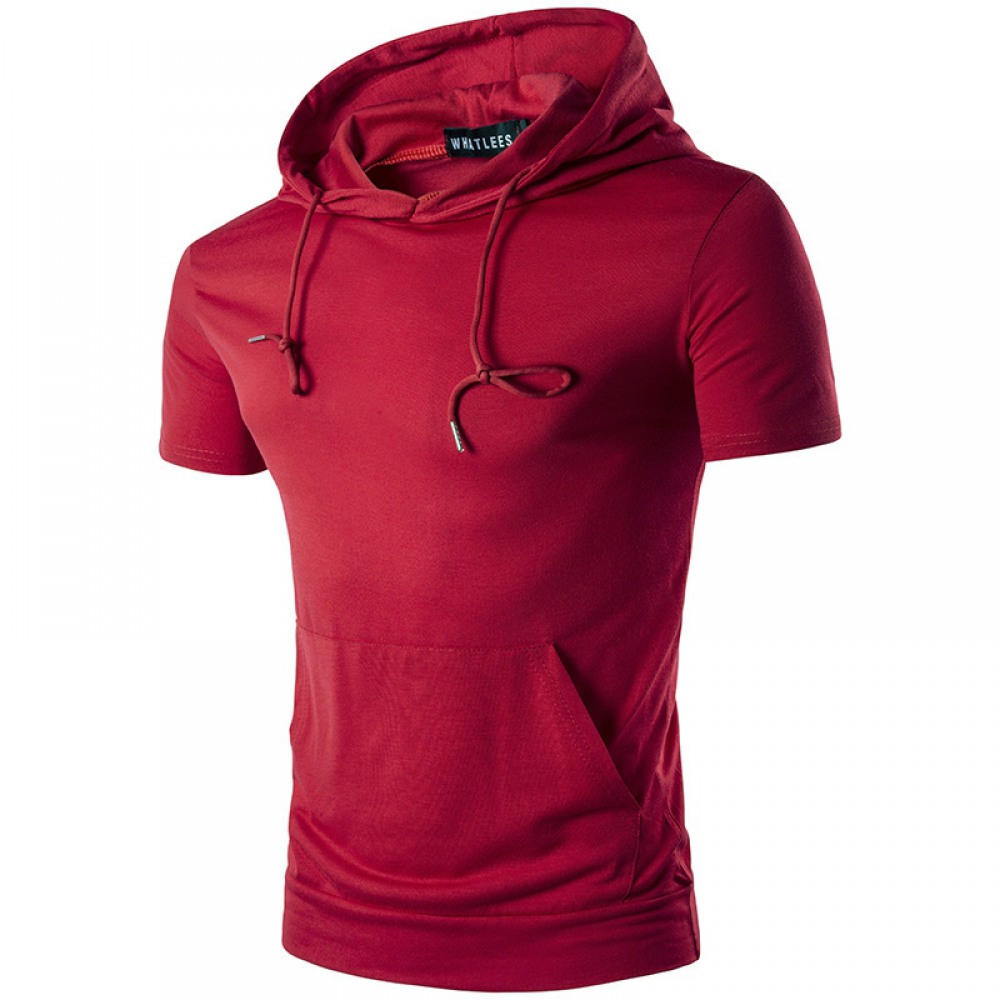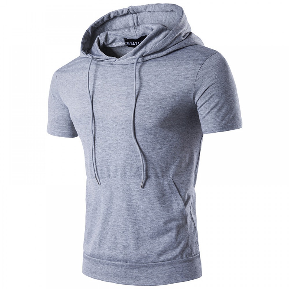 Summer Men's Hooded Big Pockets Solid Color Plus Size High Street Hip-Hop Short-Sleeved T-Shirt
