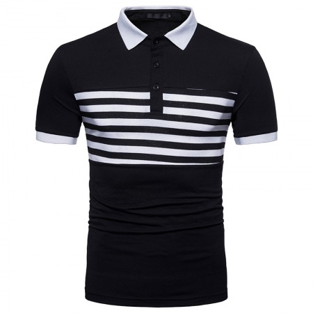 Summer Men's Short-Sleeved T-Shirt Small Lapel Striped Polo Shirt Mens Slim Trend Shirt Collar